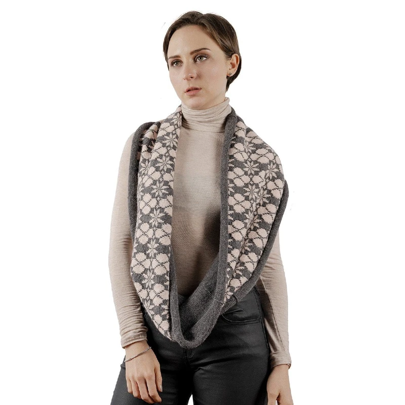La bufanda T’ika infinity, inspirada en elementos de la naturaleza, tiene una textura acogedora y envolvente que resulta en el complemento ideal para realzar tu look invernal. Fabricado con fibra natural 100% de Baby Alpaca.