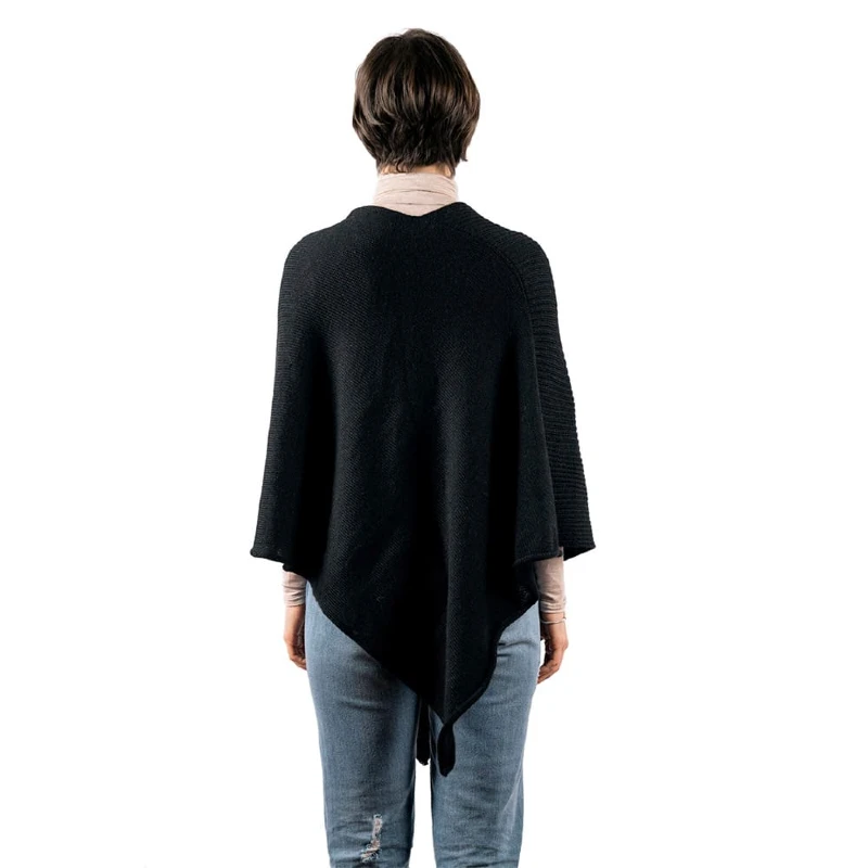 El poncho Ch’illu de doble cara tiene una forma angular, versátil y atrevida, con toques de sobriedad y elegancia, que no te harán pasar desapercibido.