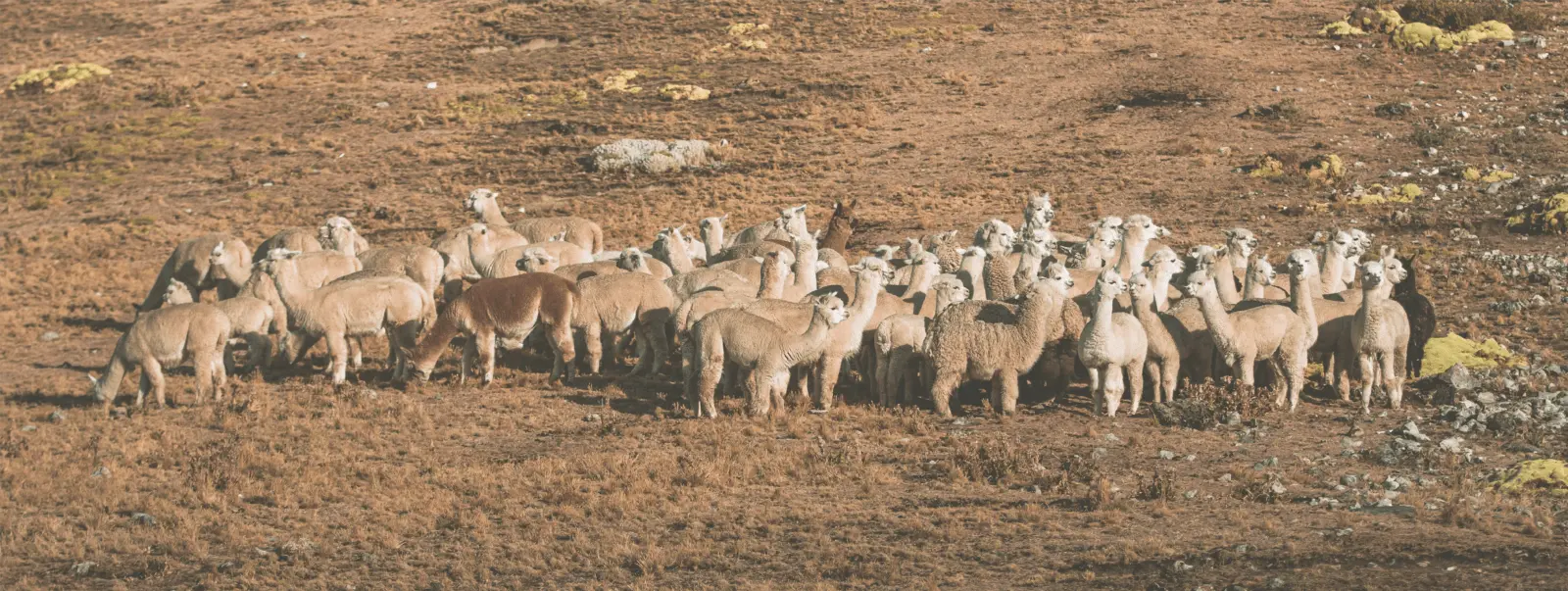 Las alpacas son camélidos nativos de los Andes. Viven a una altitud de 2500 a 4500 metros sobre el nivel del mar en las duras llanuras altas, soportando condiciones climáticas extremas que pueden variar de + 30 ° C a – 20 ° C en un solo día.