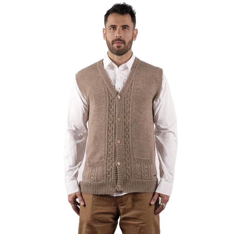 El chaleco Tupa, diseñado con detalles trenzados en colores profundos, te hará lucir elegante y sobria en cada ocasión especial.